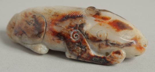 A CARVED WHITE JADE DOG.