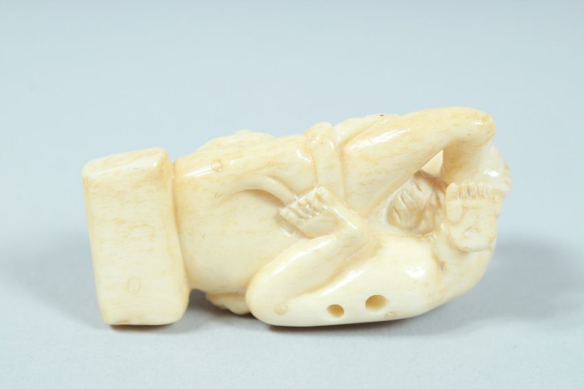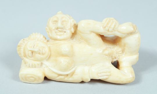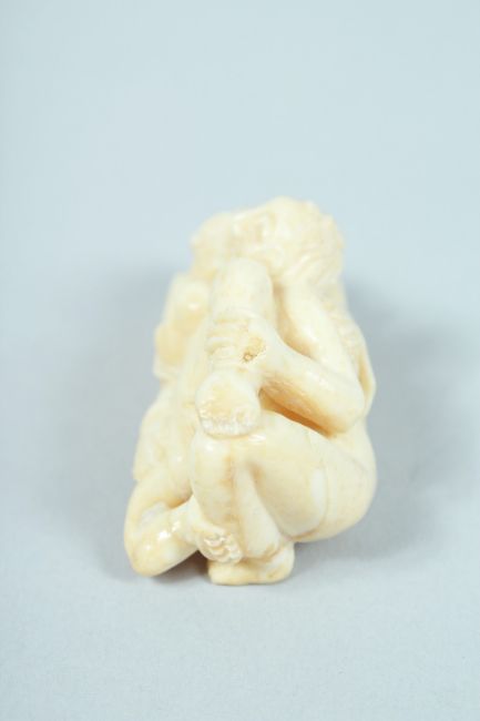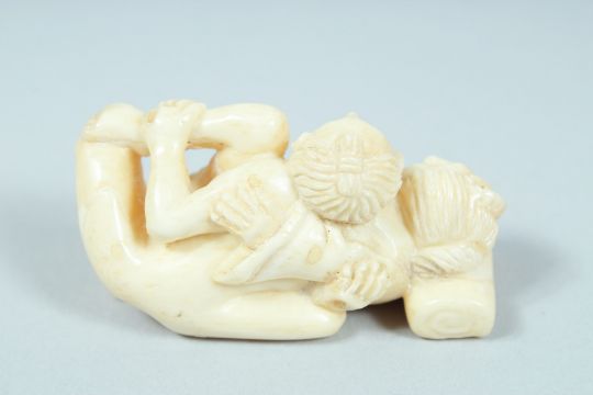 AN EROTIC CARVED BONE NETSUKE.