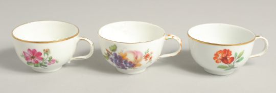 THREE 19TH CENTURY BERLIN PORCELAIN CUPS painted with flowers.