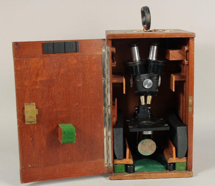 A C. BAKER LONDON, BLACK MICROSCOPE No. 20466.