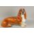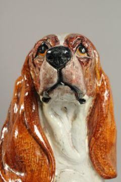 A LARGE CONTINENTAL POTTERY BASSET HOUND.