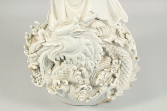 A LARGE CHINESE WHITE PORCELAIN STANDING GUANYIN FIGURE.