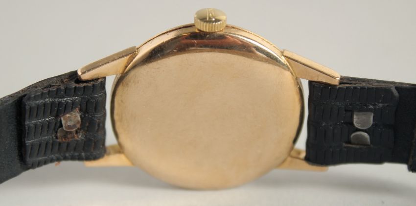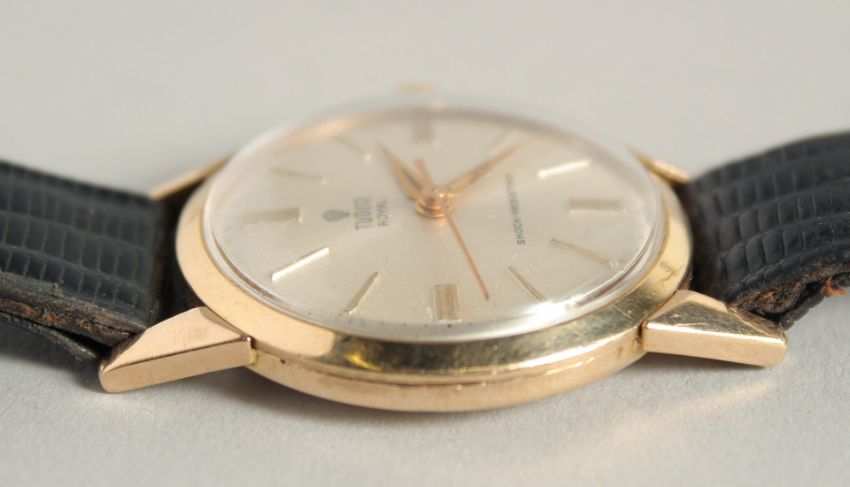 A GENTLEMAN'S 9CT GOLD TUDOR ROYAL SHOCK RESISTANT WRISTWATCH with leather strap.