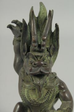 A SMALL CHINESE ANGRY GOD BRONZE FIGURE