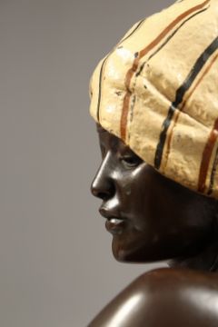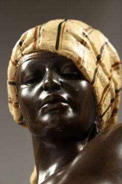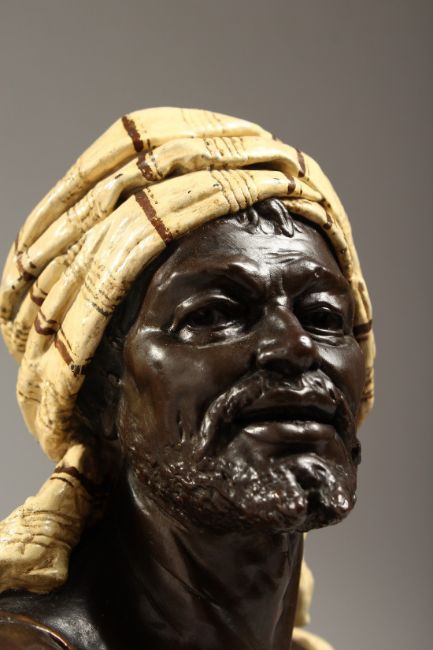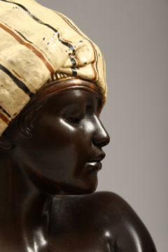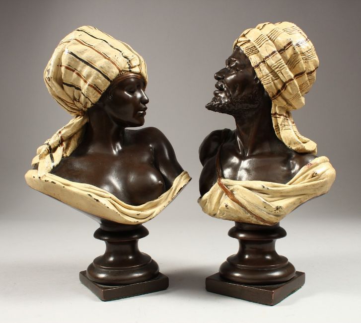 A VERY GOOD PAIR OF NORTH AFRICAN POTTERY BUSTS of a man and a young lady