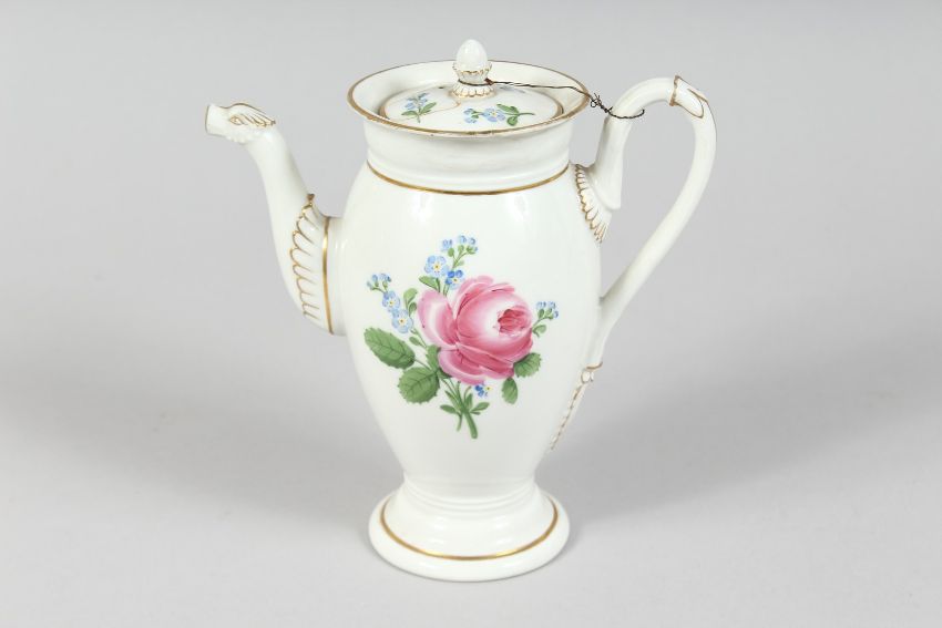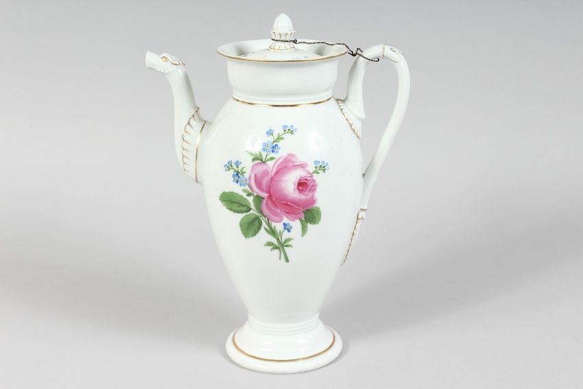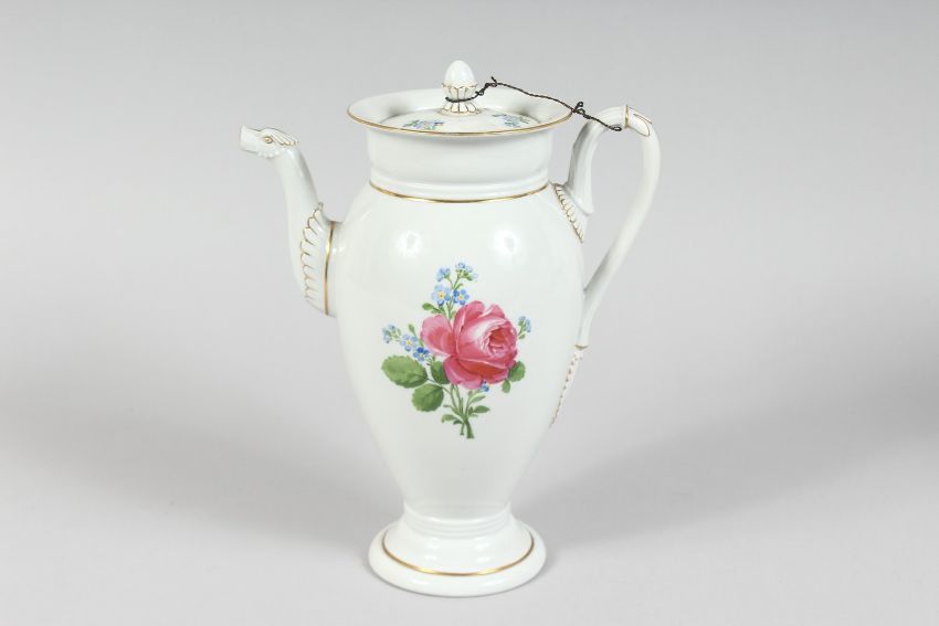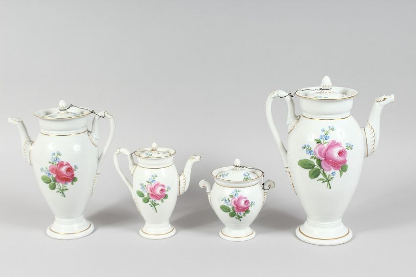 A FOUR PIECE MEISSEN PORCELAIN TEA SET, painted with roses.