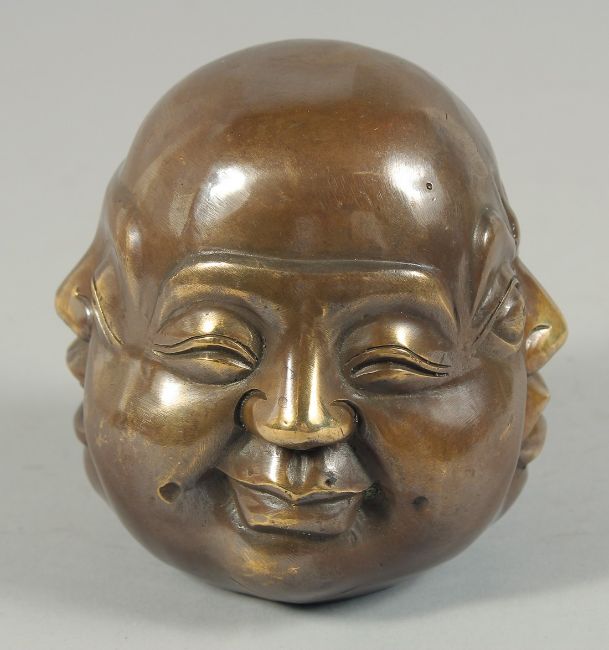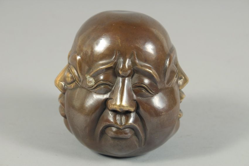 A SMALL CHINESE BRONZE FOUR FACES BUDDHA.
