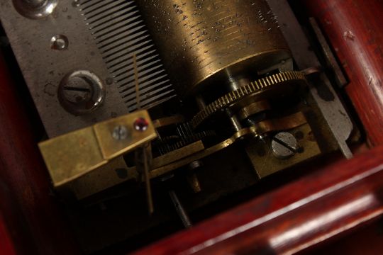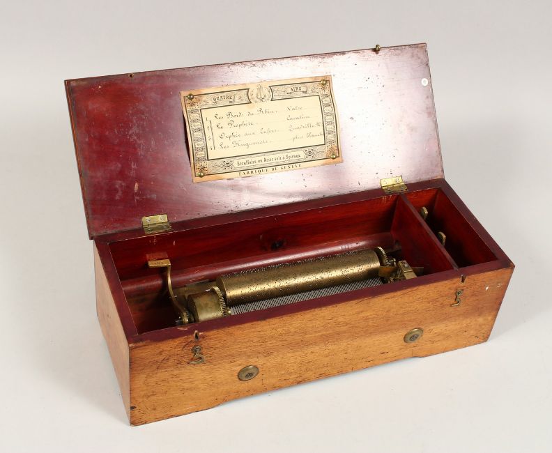 A GOOD SWISS MUSICAL BOX playing four discs, in a plain case.