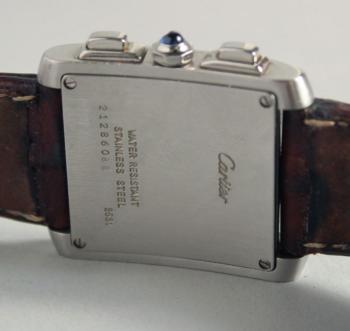 A GENTLEMAN'S CARTIER TANK WATCH "CHRONOGRAPH" with a later strap. No. 21286088 2631 in an original Cartier red box.
