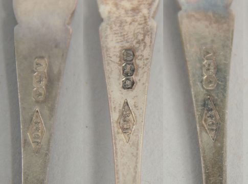 A SET OF SIX SILVER COFFEE SPOONS in a fitted case.