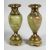 A GOOD SMALL PAIR OF ONYX AND CLOISONNE ENAMEL VASES with gilt mounts.