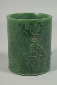 A JADE POT carved with figures in relief.