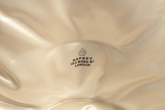 AN ASPREY SILVER THREE PIECE CHRISTENING SET, bowl, cup, and spoon in a fitted case.