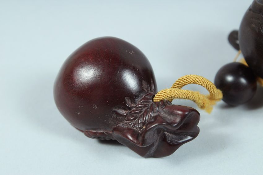 A JAPANESE CARVED WOOD BUDDHA INRO on a string.