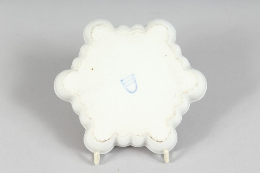 A SMALL VIENNA BLUE GROUND SHAPED DISH, a man on horseback