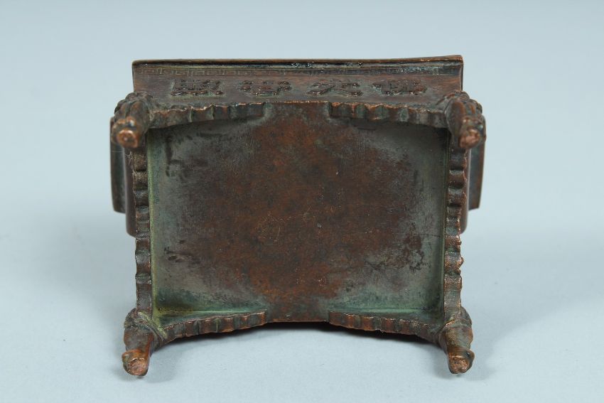 A CHINESE BRONZE TWO HANDLED RECTANGULAR CENSER