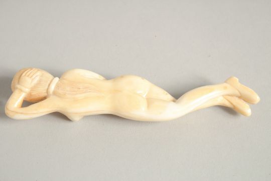 A CARVED BONE DOCTOR'S NUDE FIGURE.