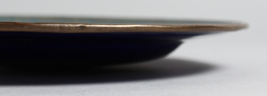 A SUPERB 19TH CENTURY VIENNA ENAMEL PLATE painted with an interior scene, a young lady serving a man as he sits in front of her. 8.5in diameter.