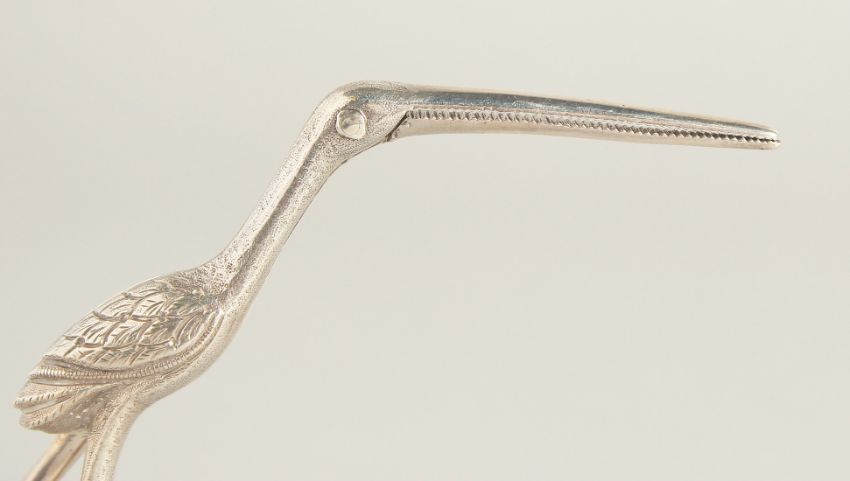 AN UNUSUAL PAIR OF GEORGE III STORK TWEEZERS OR SCISSORS.