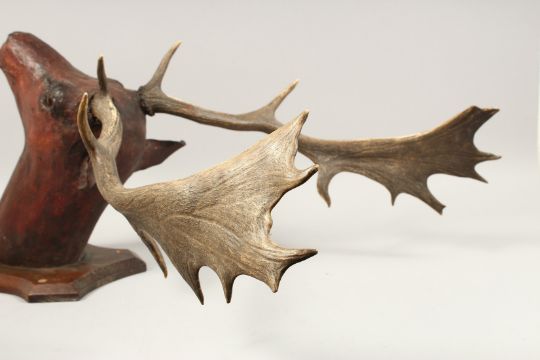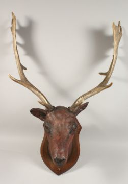 A FINE SPECIMEN STAG'S HEAD on a wooden shield.