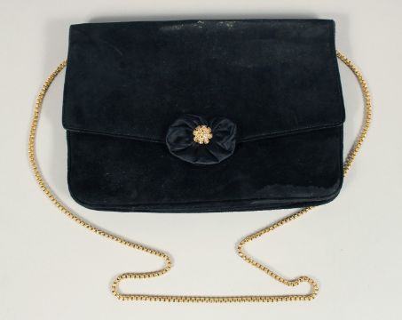 A BLACK VELVET EVENING BAG 6.5ins x 9.5ins with gilt stud.