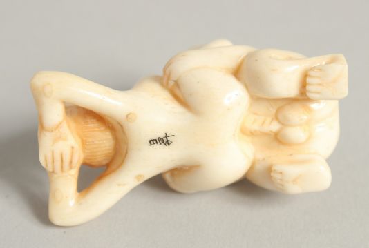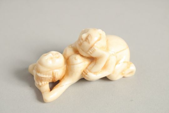 A CARVED BONE EROTIC NETSUKE.