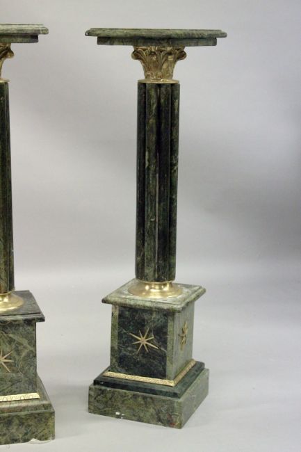 A PAIR OF MARBLE COLUMNS with square top.