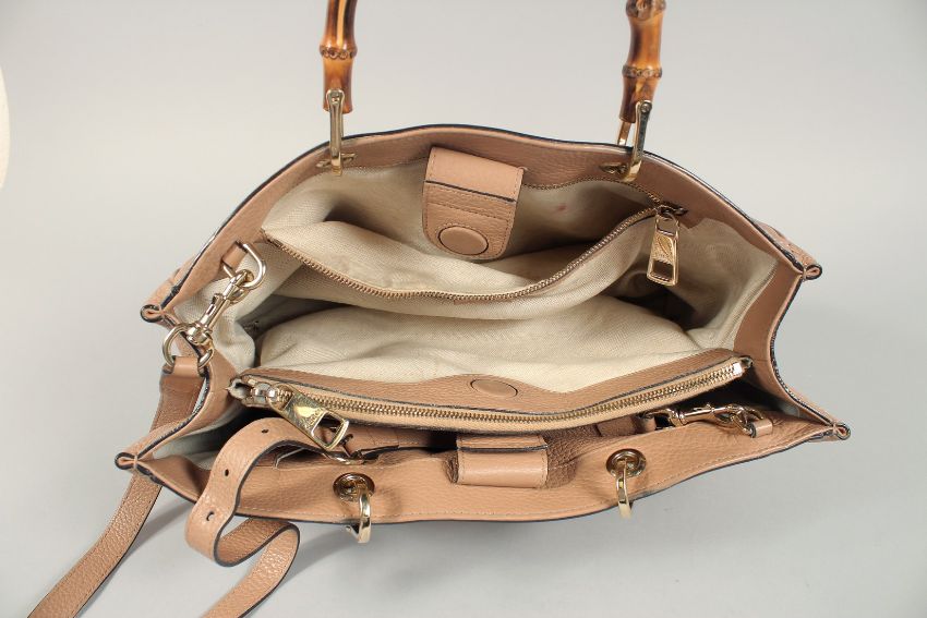 A GUCCI TWO HANDLED LEATHER BAG