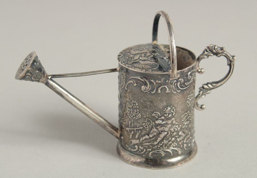 A SILVER WATERING CAN.2.5ins high.