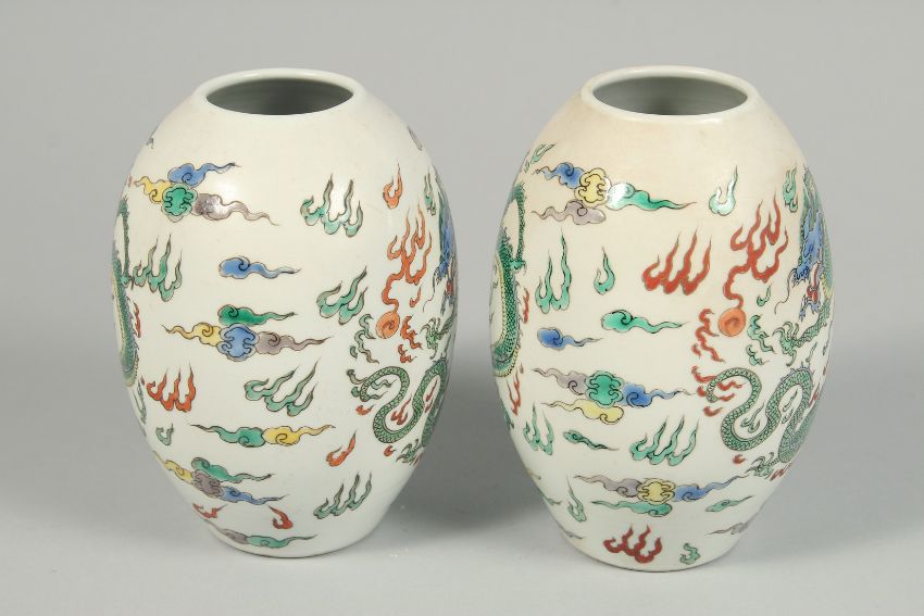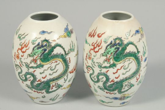 A PAIR OF CHINESE VASES decorated with dragons.