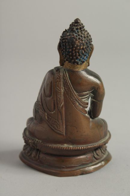 A SMALL 18TH CENTURY BRONZE BUDDHA.