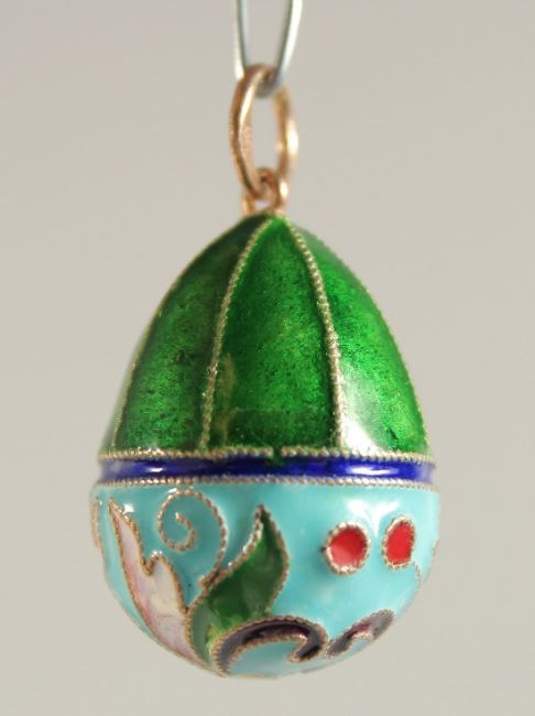 A SILVER AND ENAMEL EGG PENDANT