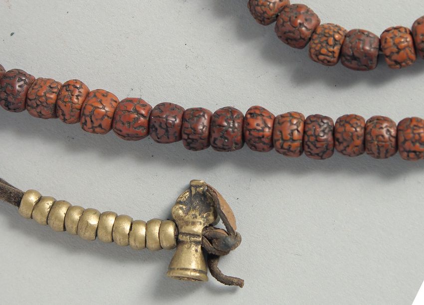 A CHINESE CINNABAR NECKLACE.