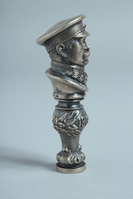 A RUSSIAN SILVER DESK SEAL a man's head, dated 1810 - 11.