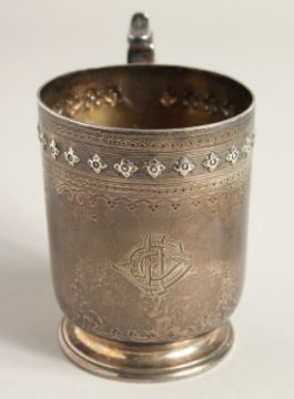A VICTORIAN ENGRAVED CHRISTENING MUG.