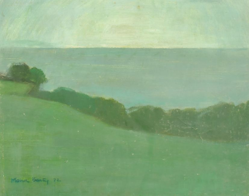 Moira Beatty (1922-2015) a coastal landscape, oil on board, signed and dated 1972, 16" x 20" (40 x 50cm).