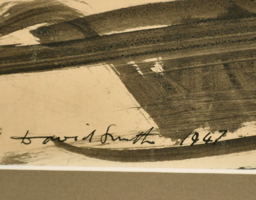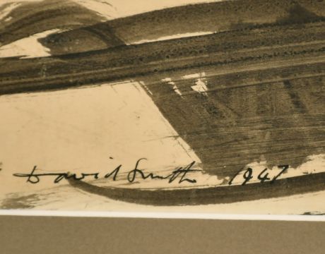 David Smith, Circa 1947, an open landscape with fields, ink, signed and dated 1947, 9.75" x 19", (25x48.5cm).