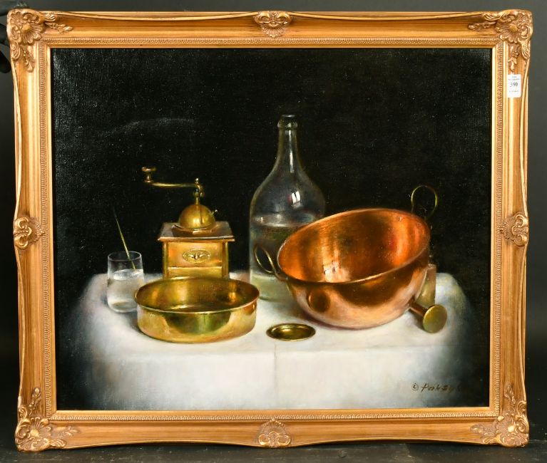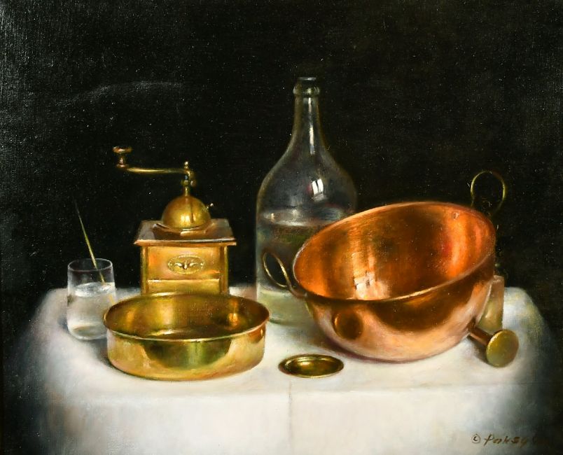 Gyula Paksy (20th Century) Hungarian, a still life of mixed objects, oil on canvas, signed, 20" x 24" (51 x 61cm).