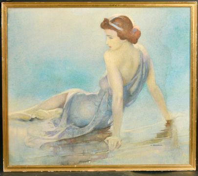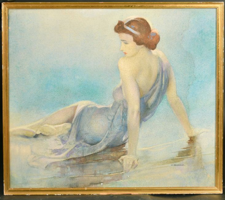 Joseph Greenup (1891-1946) British, an elegant female figure at the water's edge, watercolour, signed, 16.5" x 19.75" (42 x 50cm).