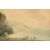 William Pars (1742-1782) Two British views, watercolours with pen and ink, one of Ullswater with travellers on a path, inscription under mount, 11.5" x 17.75", (unframed) (29.5x45cm) the other of fishermen pulling in a net from the shore, a hill side village beyond, 10.5" x 16.5", (27x42cm) (2).