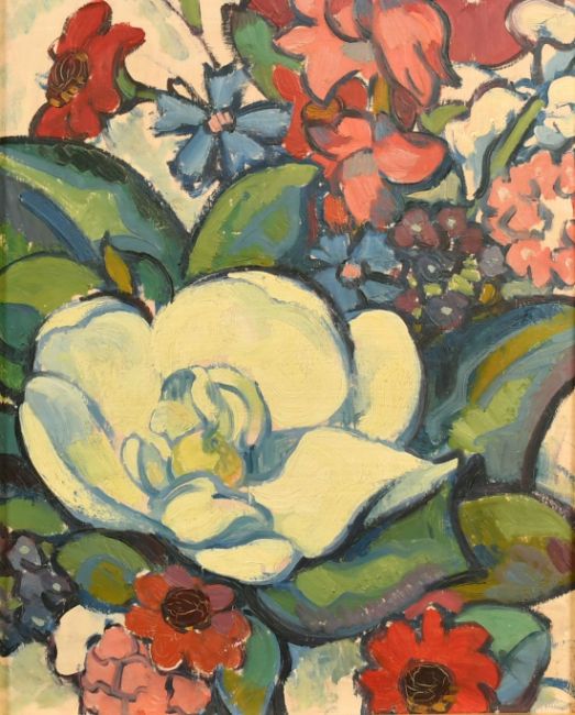 Scottish Colourist School, early 20th Century, Still life of flowers, oil on board, 16" x 13", (40.5x33cm).