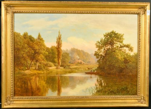 Edwin Henry Holder (1847-1922) British, figures in a rowing boat with a cottage beyond, oil on canvas, signed and dated 1892, 20" x 30" (51 x 76cm).