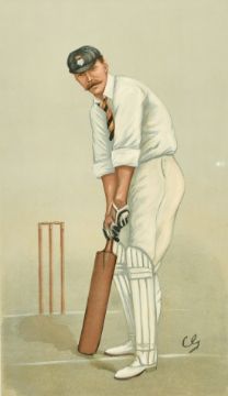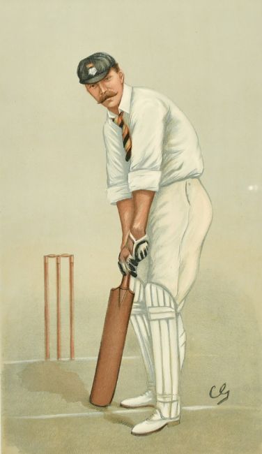 A vanity fair print of 'Hampshire' cricket, 14.75" x 10", (37.5x25.5cm) and an antique map of Hampshire, 8" x 10", (20x25.5cm) (2).