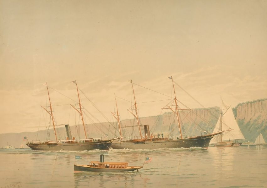 After Fred S. Cozzens, 'Under the Palisades', a coloured print, 14" x 20.25", (35.5x51.5cm).