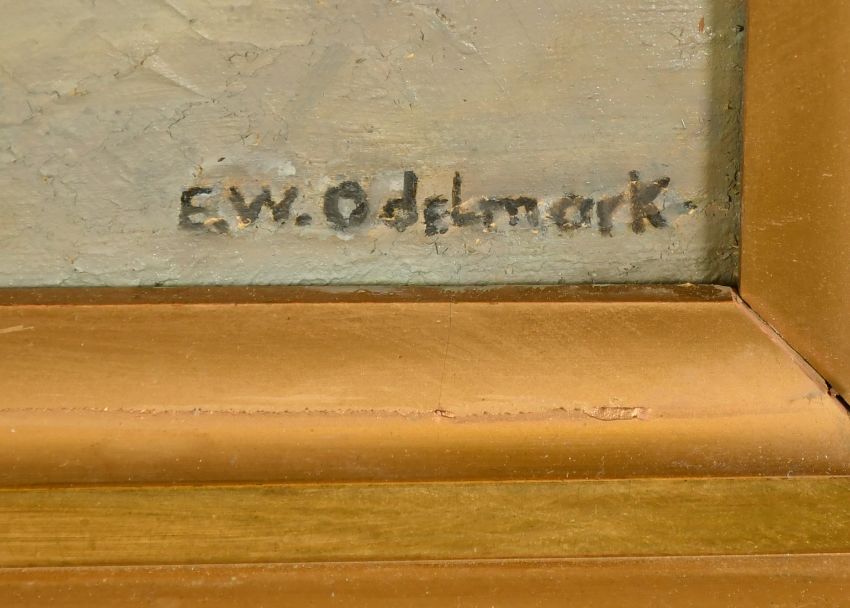 Frans Wilhelm Odelmark (1849-1937) Swedish, Arab figures in a Cairo interior, oil on canvas, signed, 35.5" x 21.5" (90 x 55cm).