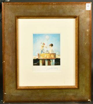 John Bellany, a signed photolithograph of a fantastical scene, 7" x 5.5" (18 x 14cm).