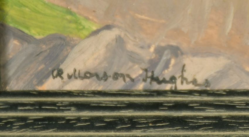 Robert Morson-Hughes (1873-1953) A Summer landscape, oil on panel, signed, 6" x 9.5", (15x24cm) and a mountain landscape, oil on board, signed, 7" x 8.5", (18x22cm) (2).