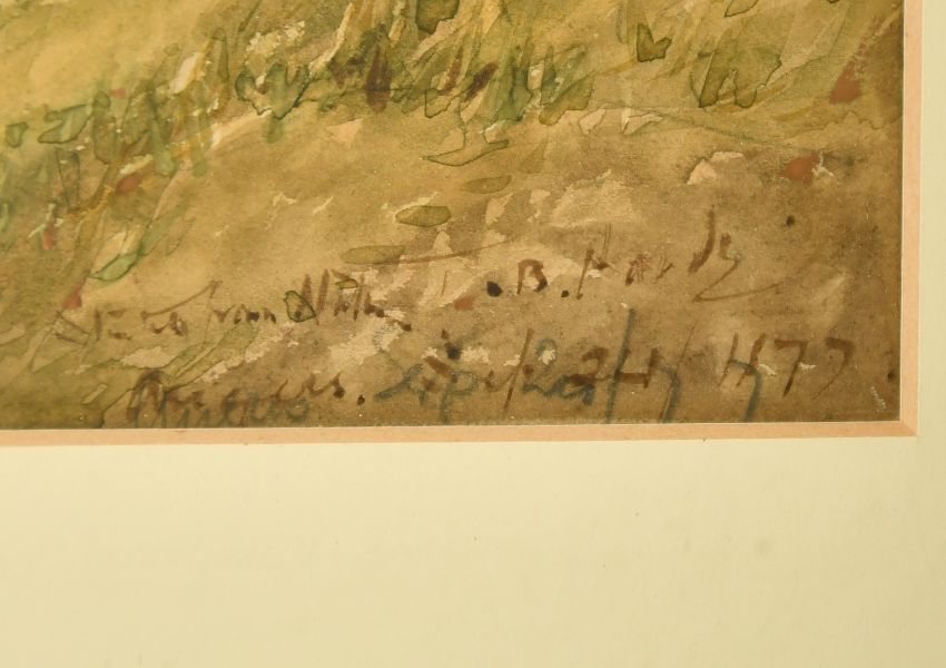 Thomas Bush Hardy (1842-1897) British, A moored boat at the river's edge with figures, watercolour, signed and dated 1877, 9.75" x 16.75", (25x42.5cm).