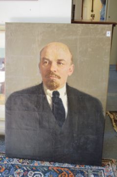 A bust length portrait of Lenin, oil on canvas, unframed.