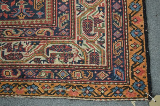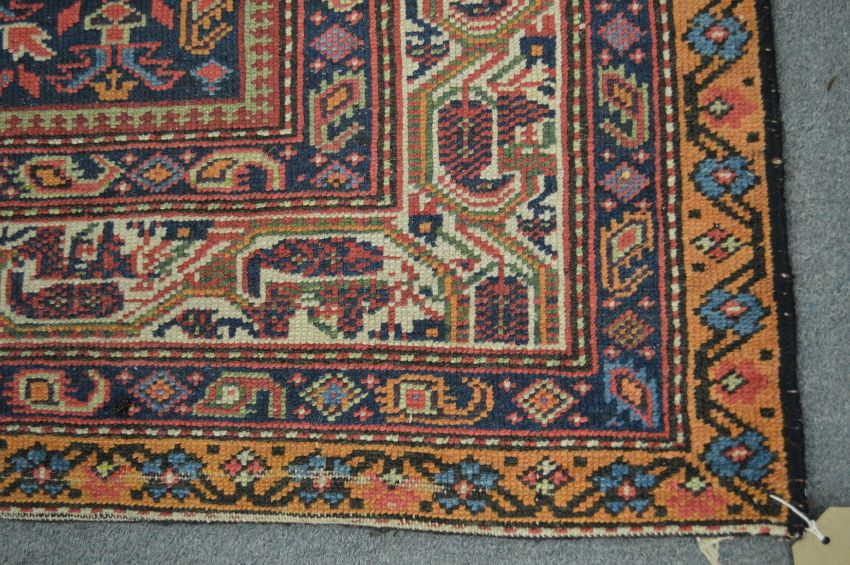 A Melahir runner, dark blue ground with geometric decoration within similar borders 500cm x 100cm.